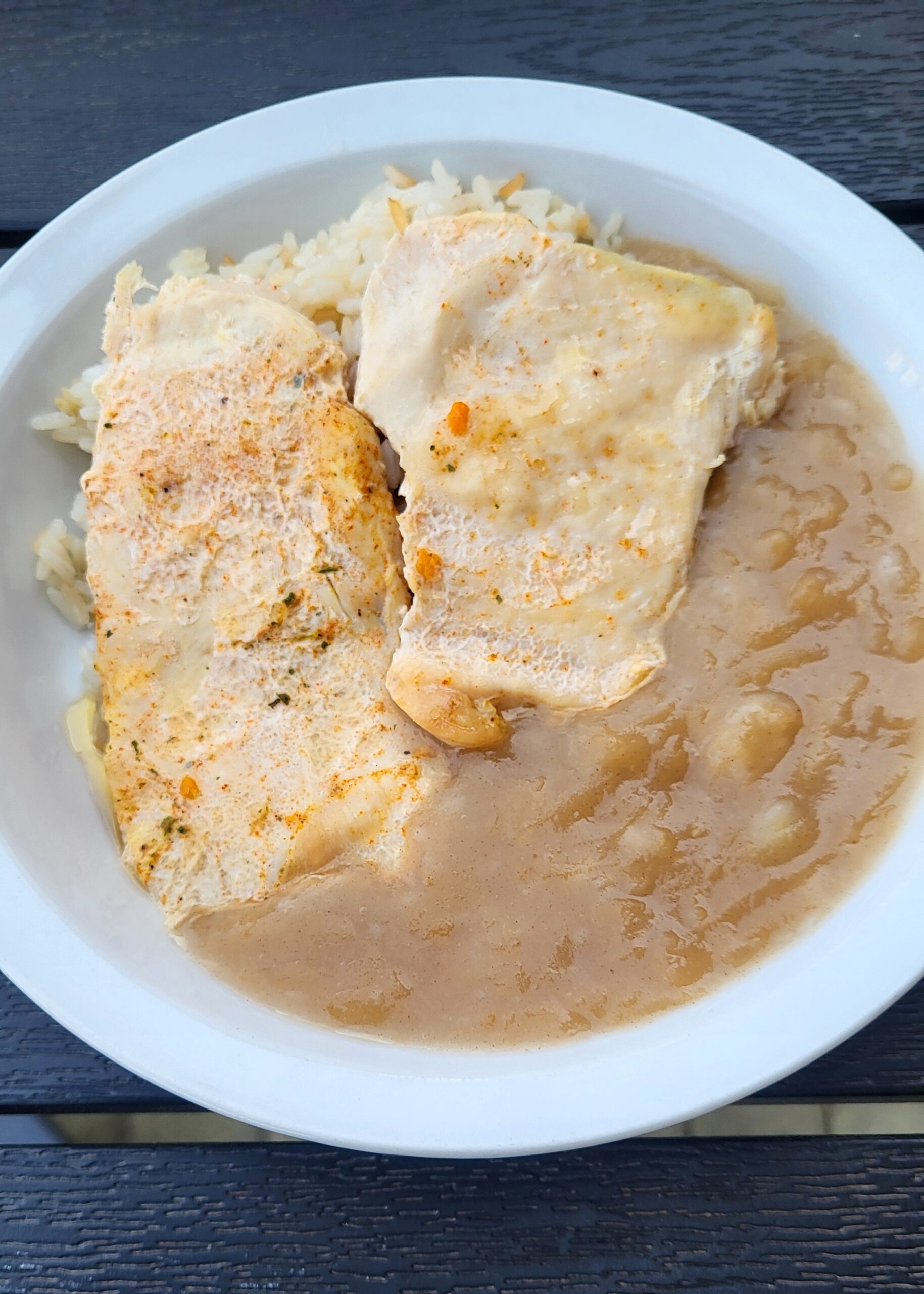 Fokhagymás csirkemell rizzsel, almamártással